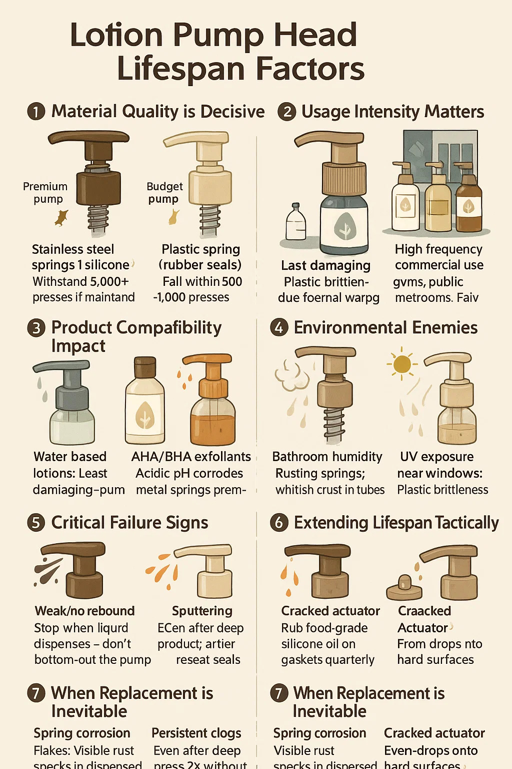 低価格ポンプ (プラスチック スプリング ラバー シール): 500 ~ 1,000 回のプレスで故障します - スプリングが疲労し、シールが亀裂します。
